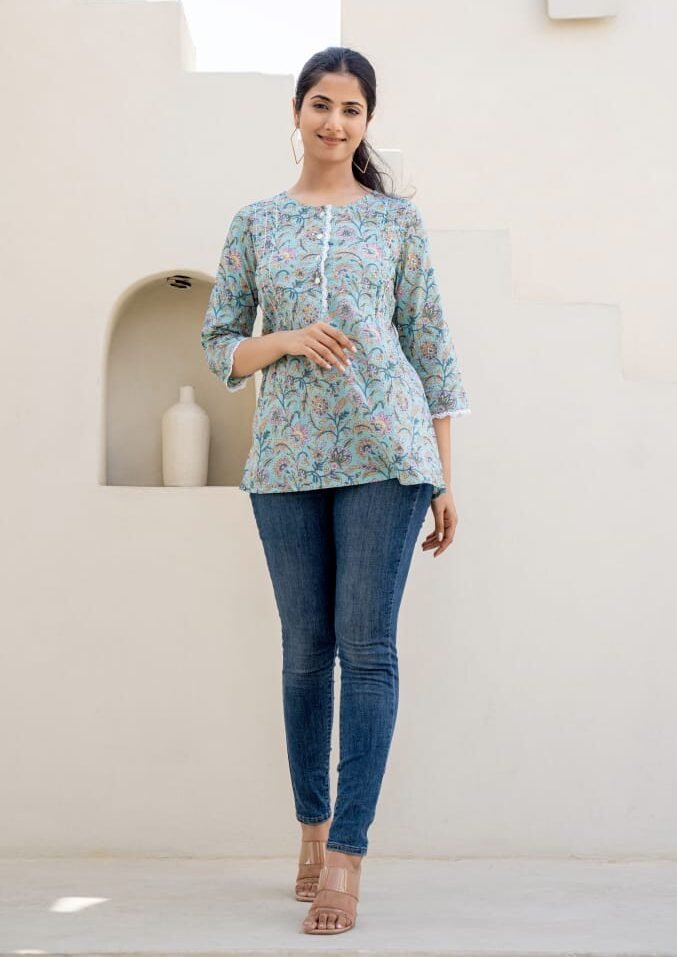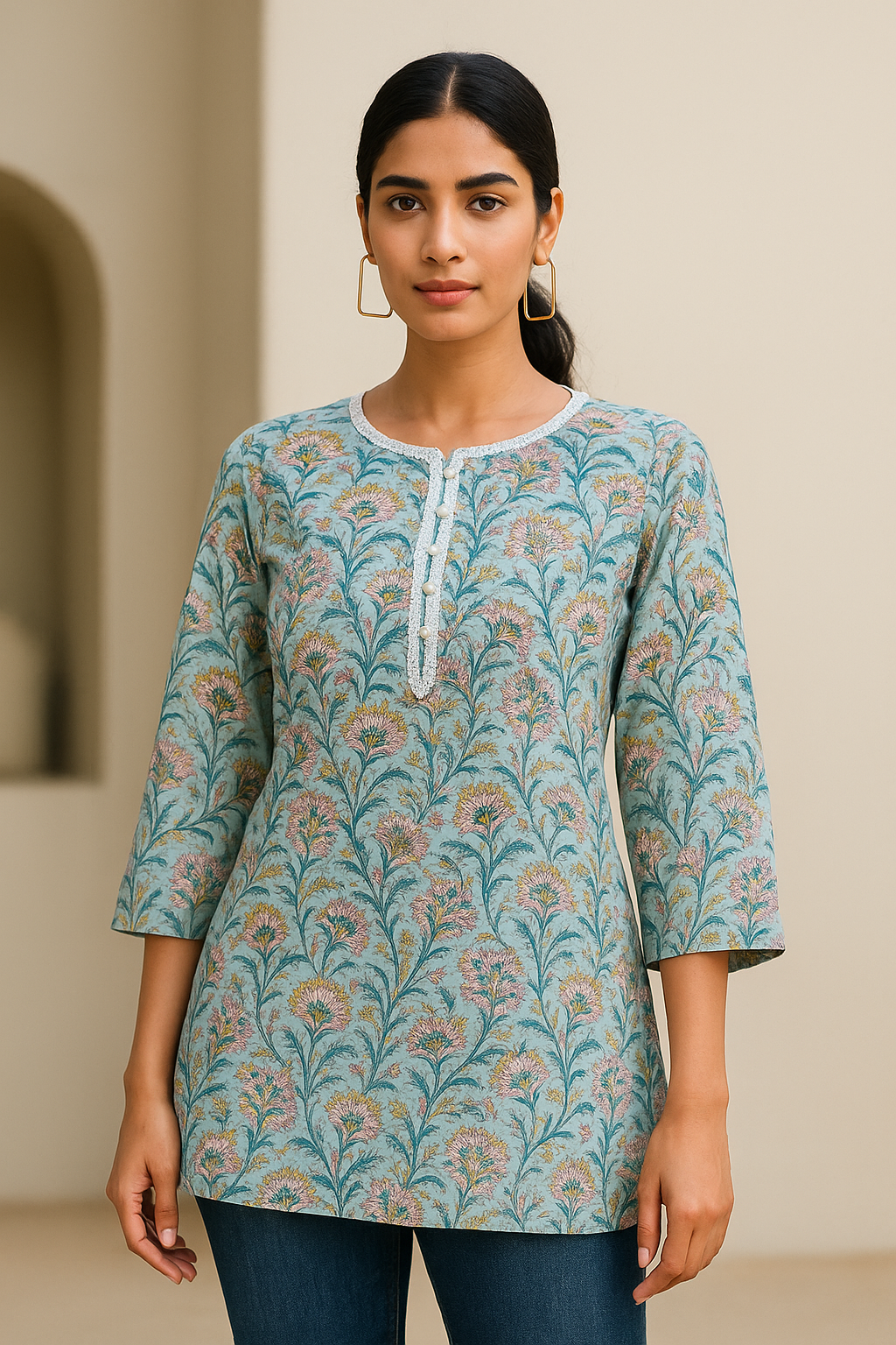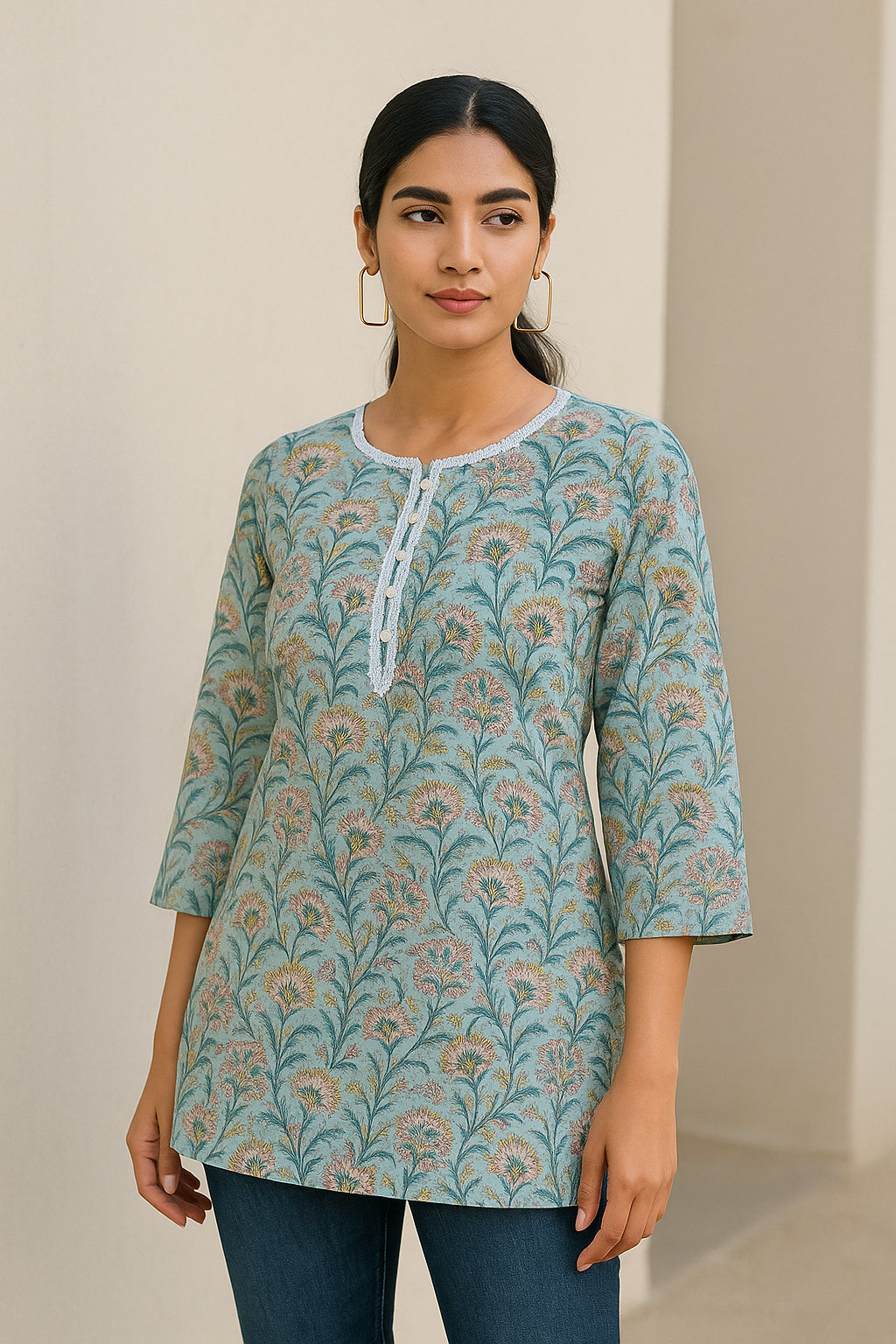 Designed with a relaxed silhouette and three-quarter sleeves, this kurti effortlessly blends tradition with modern simplicity — perfect for both casual brunches and everyday wear.